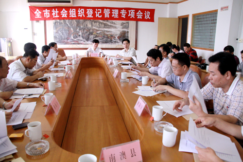 10月24日,广东省汕头市民政局组织召开全市社会组织登记管理专项会议,专题研究部署社会组织登记管理部门要争当社会组织发展的“助推者”,加快全市社会组织工作的创新与发展等问题。汕头市六区一县的民政局局长,分管社会组织登记管理工作的副局长,社会组织登记管理工作负责人,市民间组织管理局全体工作人员等30多人参加了会议。会议传达学习了10月11日广东省民政厅社会组织工作会议精神,各区县民政局局长就贯彻落实加强社会建设的决定,创新社会组织管理模式工作情况进行了汇报,汕头市民政局党组副书记、市民间组织管理局局长张云良进行了工作总结和部署,市民政局局长王良源作了讲话。